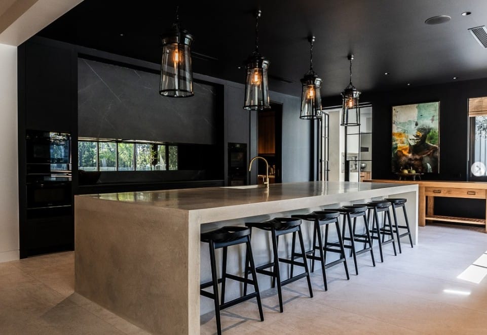 On the Gold Coast, Edje Concrete delivered a standout project that really demonstrates their design eye and craftsmanship. The centrepiece is an island benchtop with dramatic waterfall ends, paired with a seamless butler’s pantry surface and a striking fireplace hearth with wall panelling. To complete the look, they added custom details like concrete plinths and window sills, all tying together into a cohesive, architectural finish.